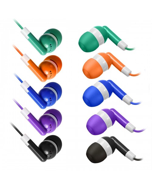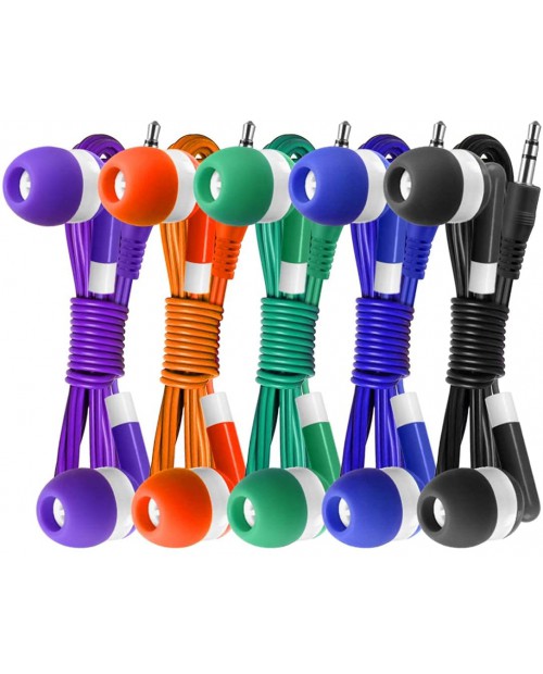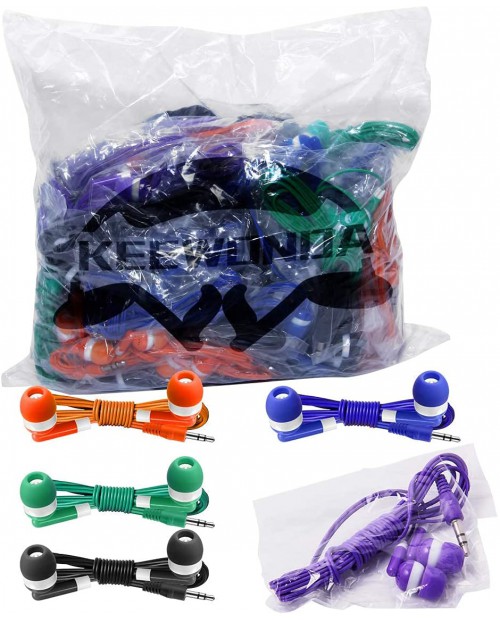 Bulk Earbuds Headphones 100 Pack Earphones- Keewonda Wholesale Classroom Ear Buds Kids Bulk Headphones Mixed 5 Assorted Colors Earbuds for Schools, Libraries, Hospitals (Mixed-Color)